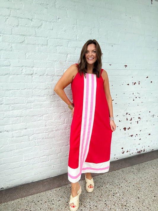BE BOLD POPLIN MAXI DRESS - BLUE/PINK