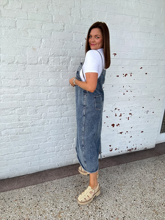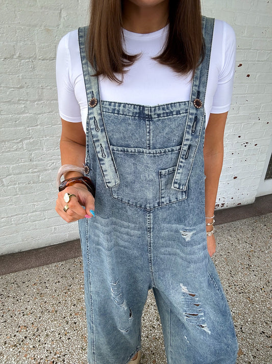 DENIM BARREL OVERALLS