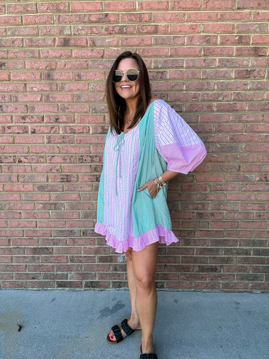 BE BOLD POPLIN MAXI DRESS - BLUE/PINK