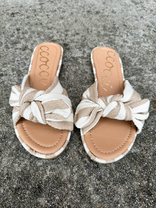SERENA STRIPED BOW SANDALS