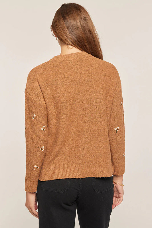 CAMEL FLORAL SWEATER