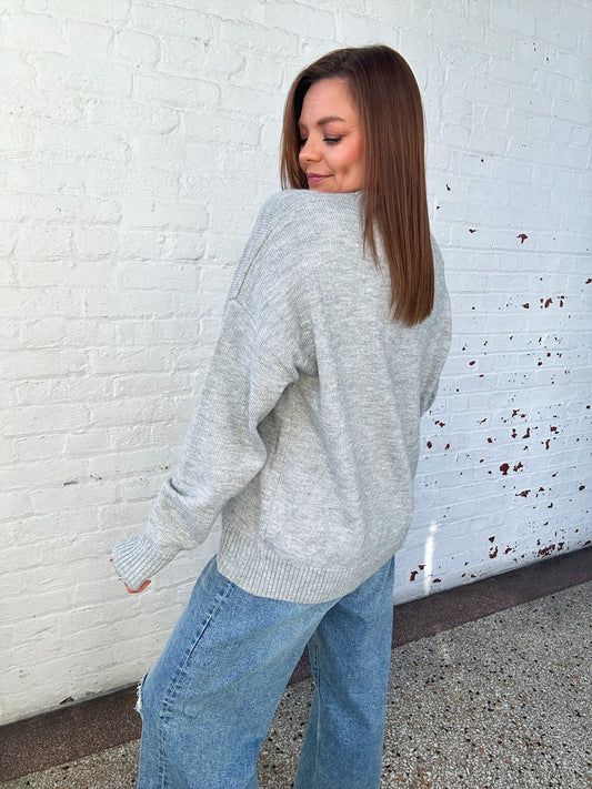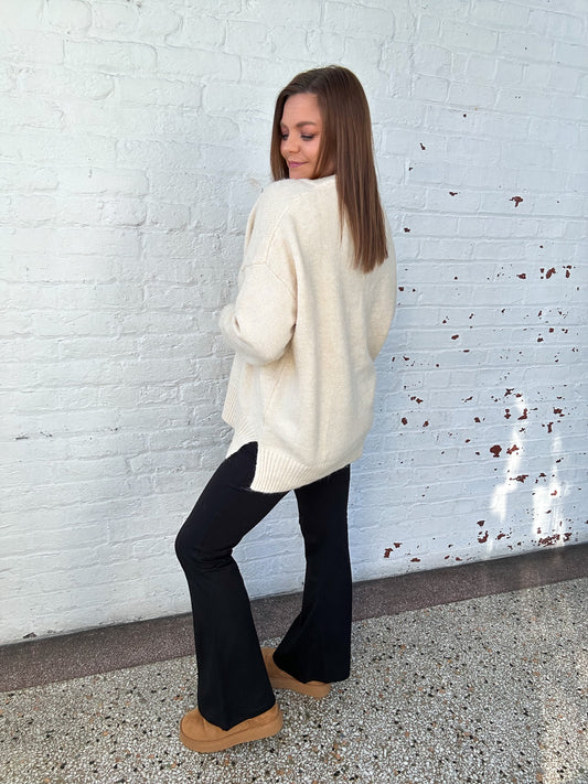 WINNIE OVERSIZED V-NECK SWEATER - CREAM