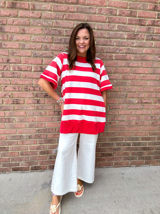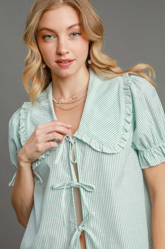 LUCKY GIRL STRIPED BUTTON DOWN TOP