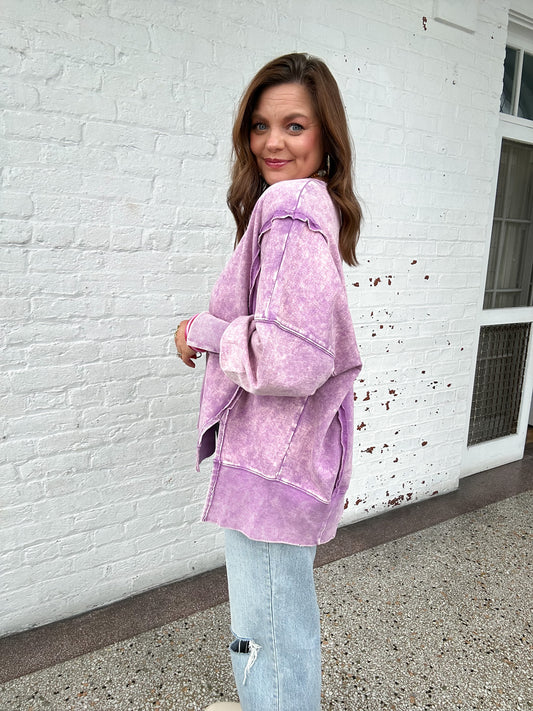 ACID WASHED OVERSIZED SWEATSHIRT - VIOLET