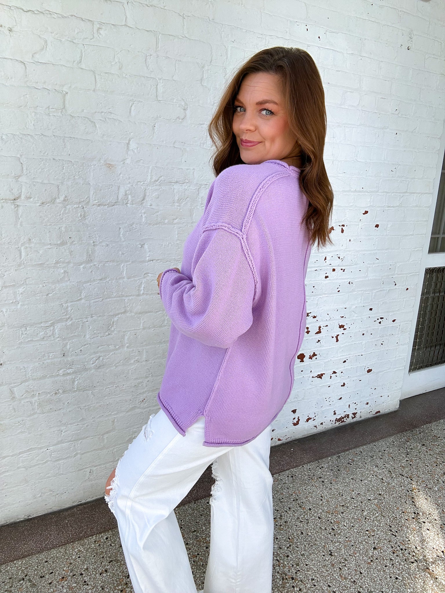 - oversized ribbed, round neckline, sleeves, and bottom hem