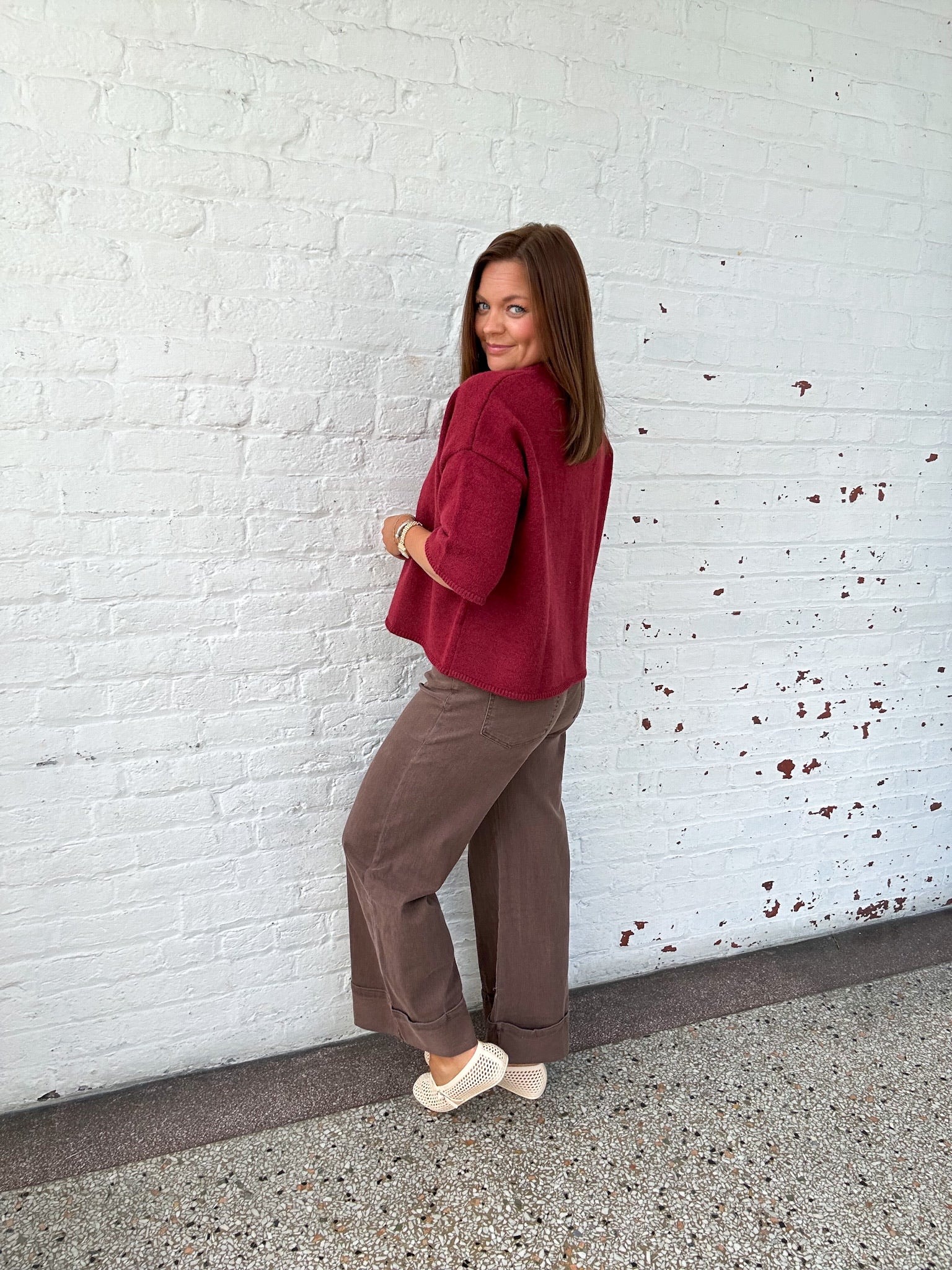 - maroon button up cardigan top