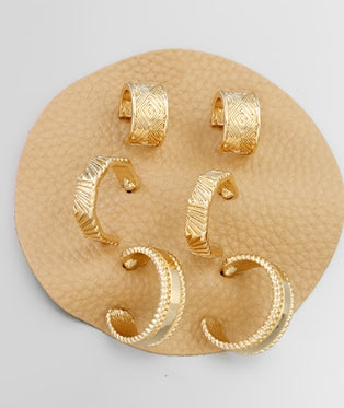 GOLD HOOP TEXTURED HOOP EARRING SET